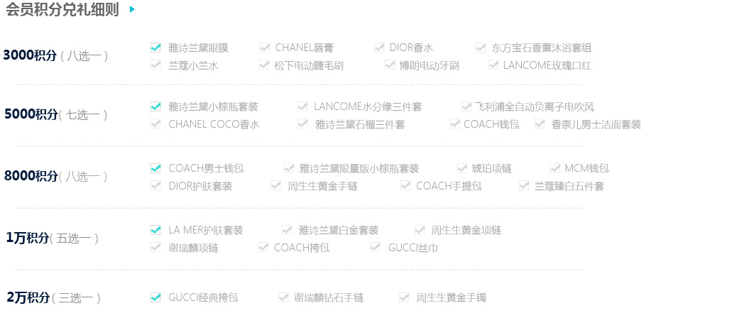 會員享受積分累積,按積分兌換禮品或項目