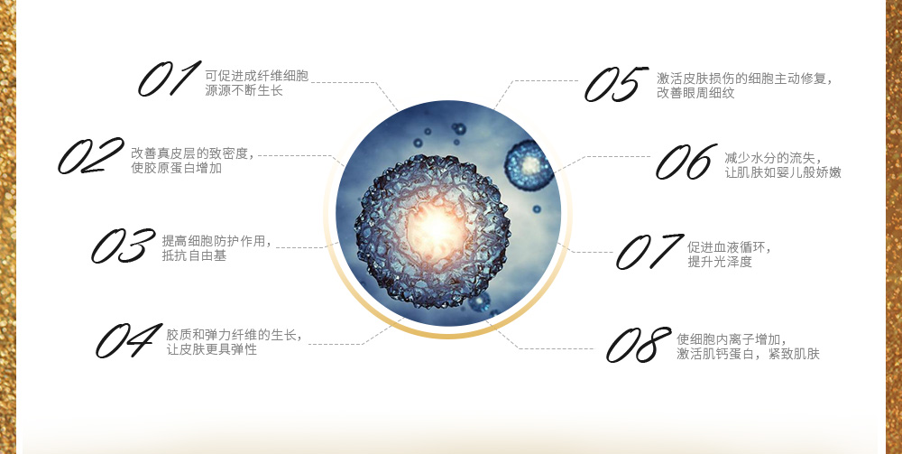 1932年,科學(xué)家卡爾教授發(fā)現(xiàn)羊胚胎細(xì)胞中有一種能使細(xì)胞恢復(fù)活力的神奇物質(zhì),并因此獲得了諾貝爾生物學(xué)獎;1978年,米歇爾.托吉曼教授在此技術(shù)上黃金配比53種青春動能素,用于皮膚抗衰(通過納米技術(shù),鎖水抗皺、撫平細(xì)紋、排出毒素,讓肌膚從內(nèi)而外煥發(fā)生機(jī)),一經(jīng)問世即風(fēng)靡歐洲,歷經(jīng)40年經(jīng)久不衰。