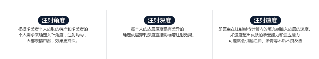 玻尿酸注射的層次、點(diǎn)位有很多禁忌,因?yàn)槟樕系纳窠?jīng)末梢多,所以要找有專業(yè)資質(zhì)的醫(yī)生;注射前3-4天和注射后一周內(nèi),不要吃阿司匹林之類的消炎藥。以免引起出血和腫脹;注射后針眼處12小時(shí)不要觸碰、沾水、化妝、按摩等;注射后一周內(nèi),忌口辛辣、海鮮、牛羊肉等。