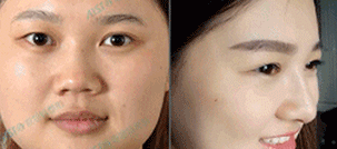 術(shù)前:鼻梁低平,山根較低 鼻頭肥大,鼻翼寬