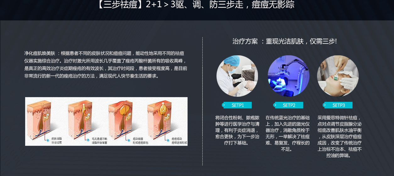 激光祛痘可以很好的為您打造出完美的白皙肌膚,幾乎不會(huì)出現(xiàn)反彈現(xiàn)象。激光祛痘就是使用特定波長(zhǎng)的激光,對(duì)抑制痤瘡賴以產(chǎn)生的皮脂過(guò)多,殺死導(dǎo)致痤瘡的多種細(xì)菌,具有很強(qiáng)的功效,從而使新生的小痘痘及時(shí)隱退。同時(shí),還能有效地刺激皮膚膠原蛋白的再生,使生過(guò)青春痘后留下的凹凸不平的痕跡恢復(fù)平整,再加上具有的激光磨削作用,從而使祛痘祛疤雙向作用合為一體,對(duì)青春痘的治療更具完美。